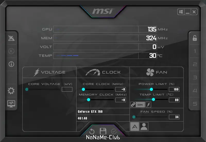 - Некоторые функции, такие как управление напряжением, могут быть ограничены на не-MSI видеокартах