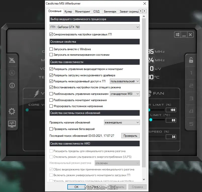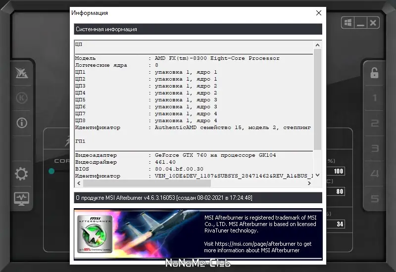 Работа с MSI Afterburner