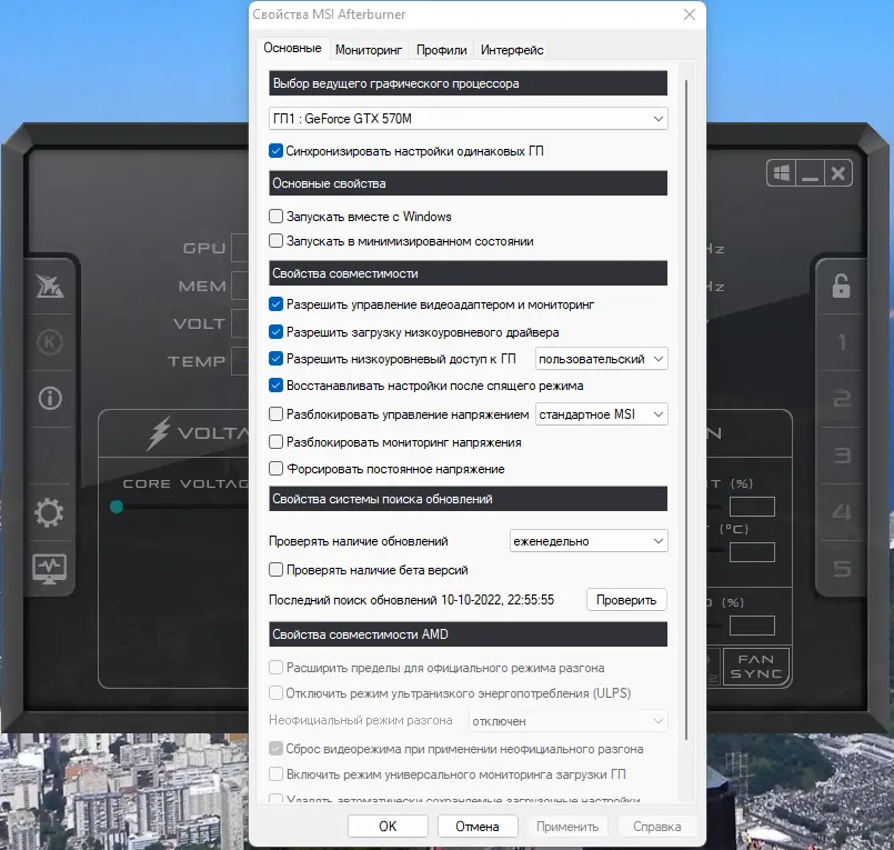 Работа с MSI Afterburner