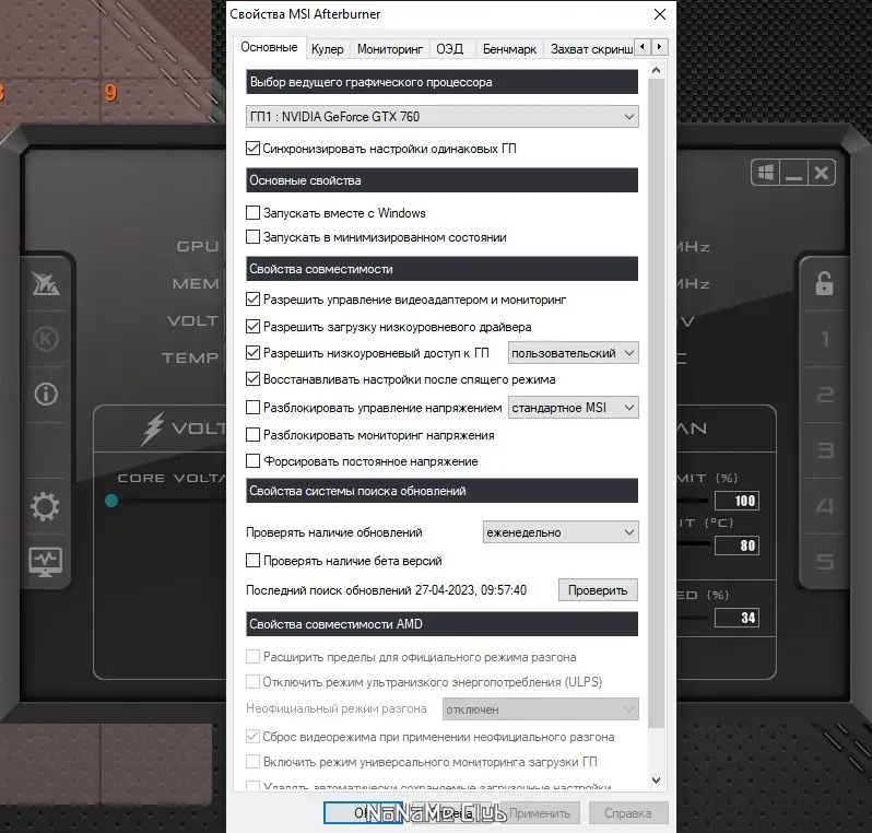- Некоторые функции недоступны на не-MSI видеокартах или требуют экспериментальных настроек