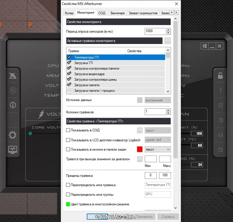 Программа обеспечивает детальный контроль над состоянием видеокарты, включая температуру, загрузку, напряжение и частоту кадров.