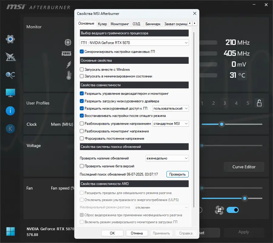 Работа с MSI Afterburner