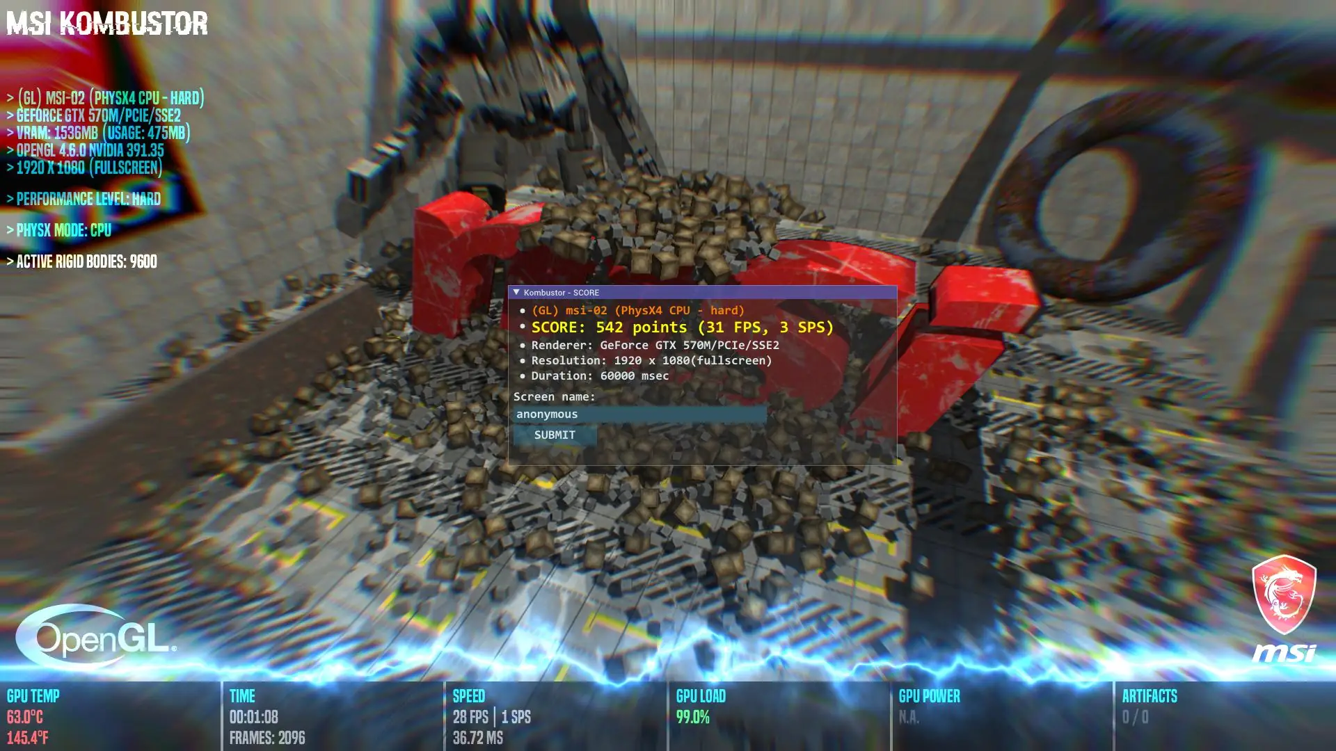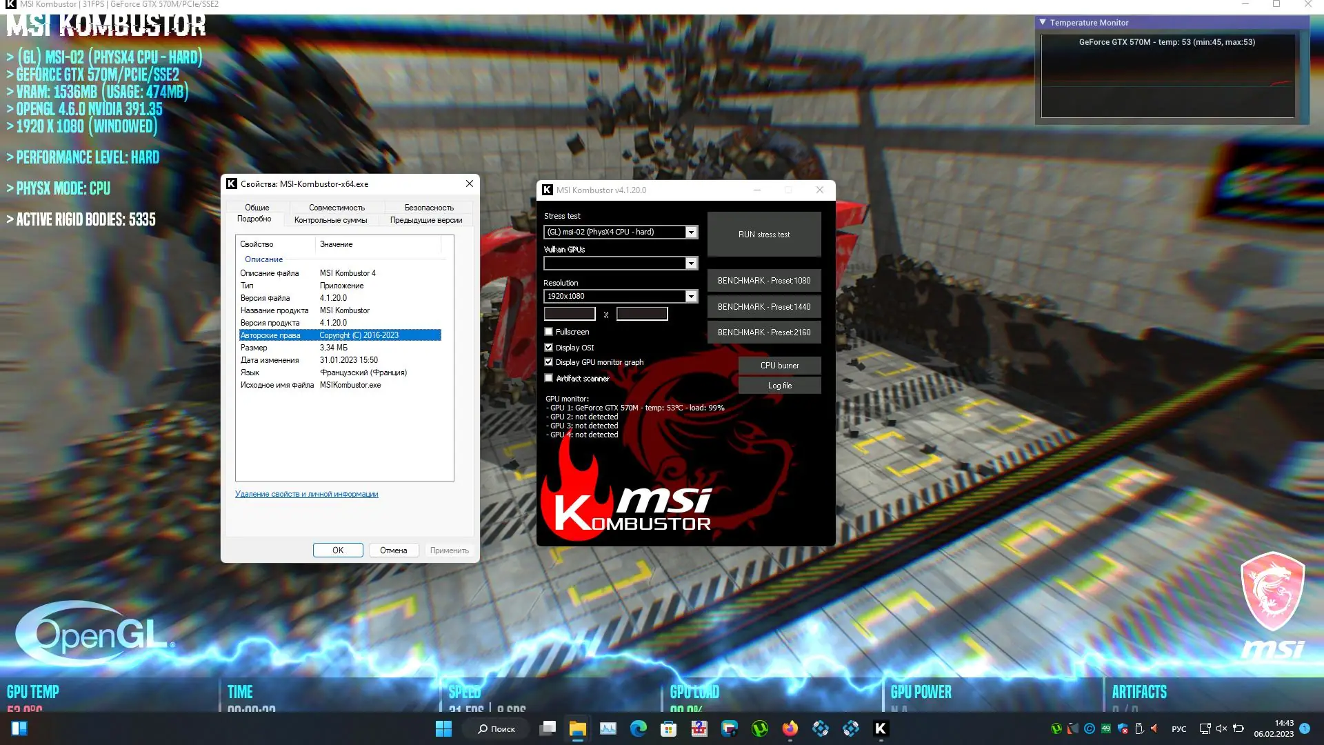 MSI Kombustor — это специализированная утилита для стресс-тестирования видеокарт, позволяющая оценить стабильность и производительность графического адаптера под высокой нагрузкой. Программа подходит как для пользователей MSI, так и для владельцев других брендов, обеспечивая точный тест и мониторинг ключевых параметров в реальном времени.