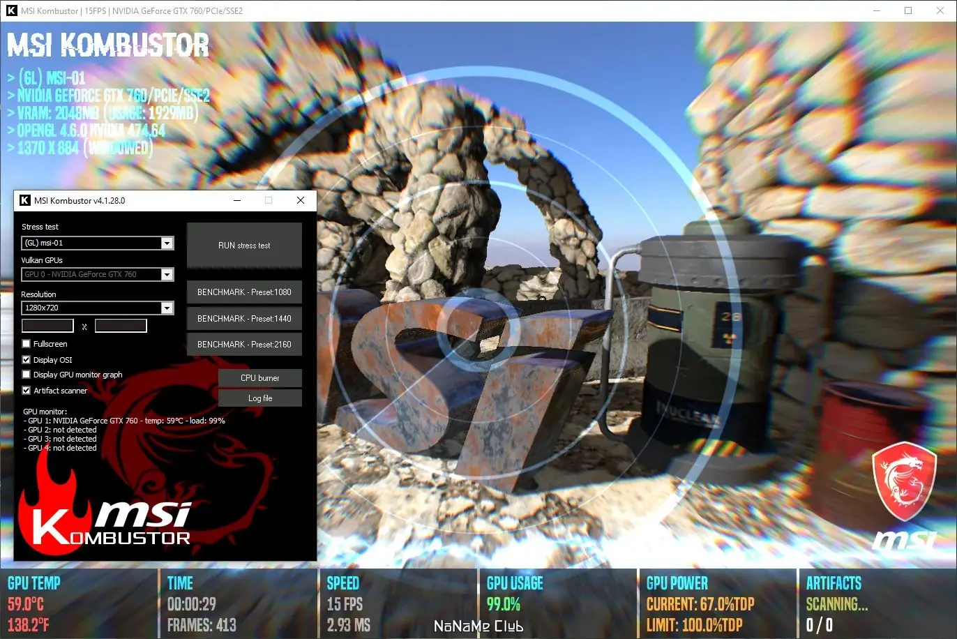 MSI Kombustor — это мощная утилита для стресс-тестирования видеокарт, позволяющая оценить стабильность и производительность графического адаптера под высокой нагрузкой. Программа подходит как для пользователей с видеокартами MSI, так и для владельцев решений других производителей. С её помощью можно провести детальный анализ температурного режима, загрузки GPU и видеопамяти, а также выполнить визуальный контроль за состоянием системы в реальном времени. Инструмент активно используется для проверки эффективности охлаждения после разгона и выявления потенциальных проблем с аппаратной частью.