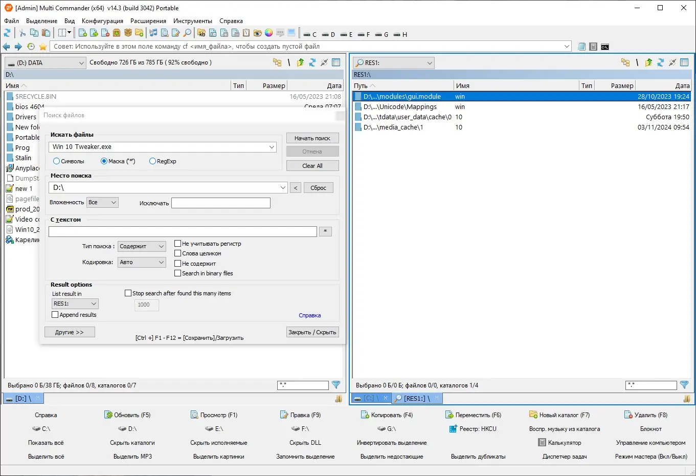 После запуска программы пользователь видит два основных окна, расположенные слева и справа, каждое из которых отображает содержимое выбранной директории. Навигация осуществляется с помощью мыши или клавиатурных комбинаций, что позволяет быстро переходить между папками, копировать и перемещать файлы, а также выполнять действия через контекстное меню. Вкладки в каждой панели позволяют хранить несколько открытых директорий, не переключаясь между окнами. Встроенный менеджер задач показывает текущие операции, такие как копирование или синхронизация, и позволяет приостанавливать или отменять их. Для просмотра содержимого файлов не требуется запускать дополнительные приложения — достаточно выбрать нужный элемент и нажать клавишу пробела или использовать функцию быстрого просмотра. Работа с архивами реализована на уровне файловой системы: архив открывается как обычная папка, и из него можно извлекать или добавлять файлы без запуска внешних утилит. Скрипты позволяют автоматизировать повторяющиеся действия, например, переименование групп файлов или сортировку по расширению.