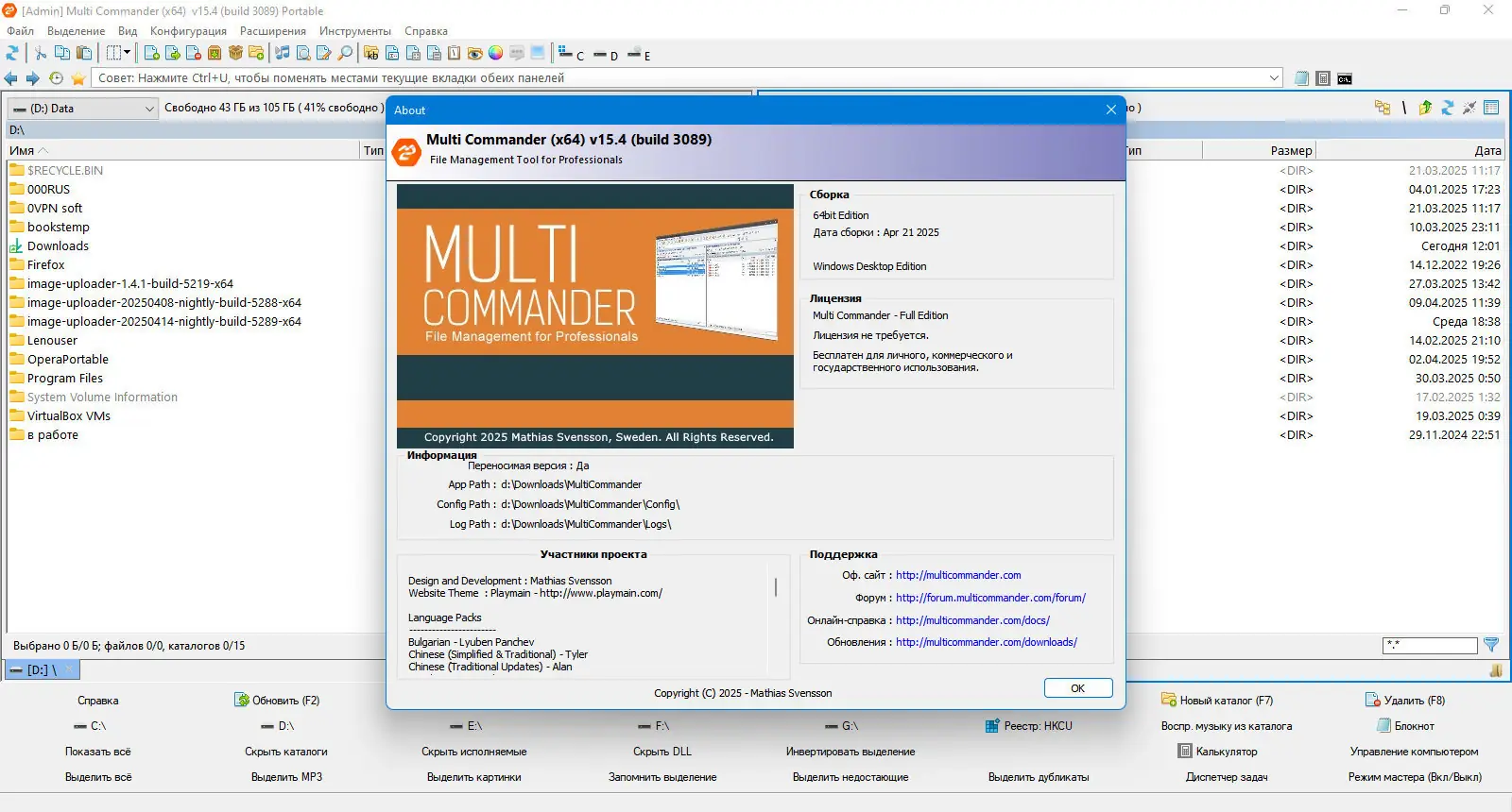 Multi Commander — это продвинутый файловый менеджер с двухпанельным интерфейсом, предлагающий расширенные инструменты для управления файлами, автоматизации задач и работы с архивами. Программа подходит как для повседневного использования, так и для профессиональных задач, требующих быстрого доступа к файловой системе и гибкой настройки рабочего окружения. Её портативная версия позволяет запускать приложение без установки, сохраняя настройки на внешнем носителе.