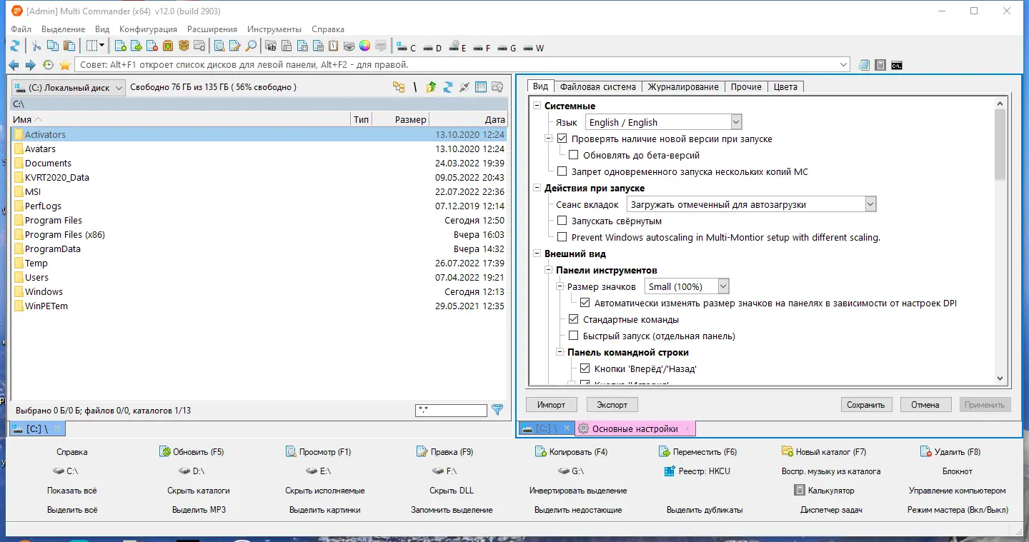 Работа с Multi Commander