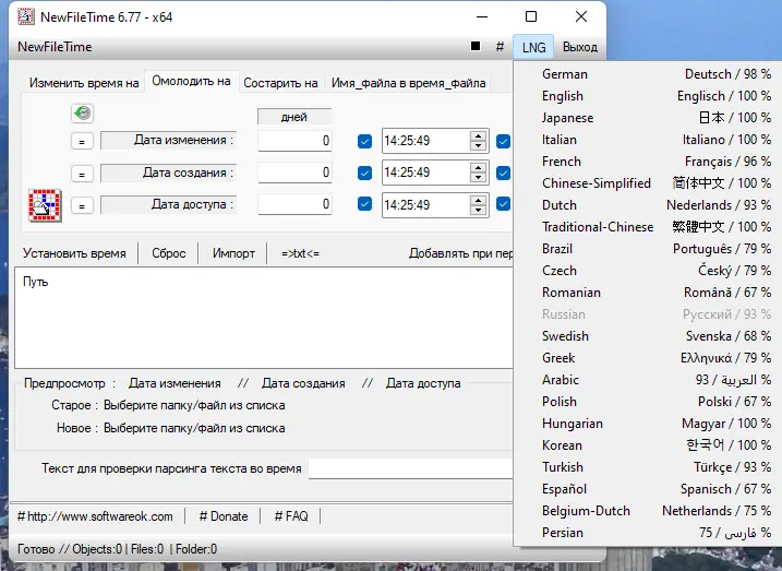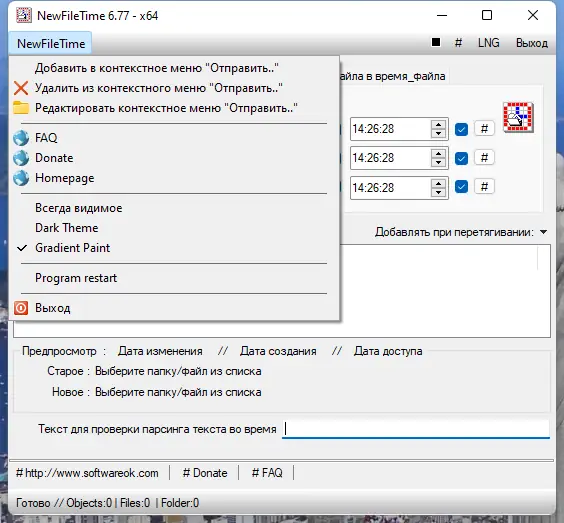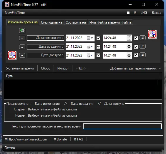 Небольшая, но эффективная утилита NewFileTime позволяет быстро и без лишних сложностей выполнять изменение даты и времени файлов на компьютере под управлением ОС Windows. Программа не требует установки и поддерживает русский язык интерфейса, что делает её удобной для пользователей из русскоязычных стран. Подходит как для единичного редактирования, так и для массовой обработки файлов и папок.