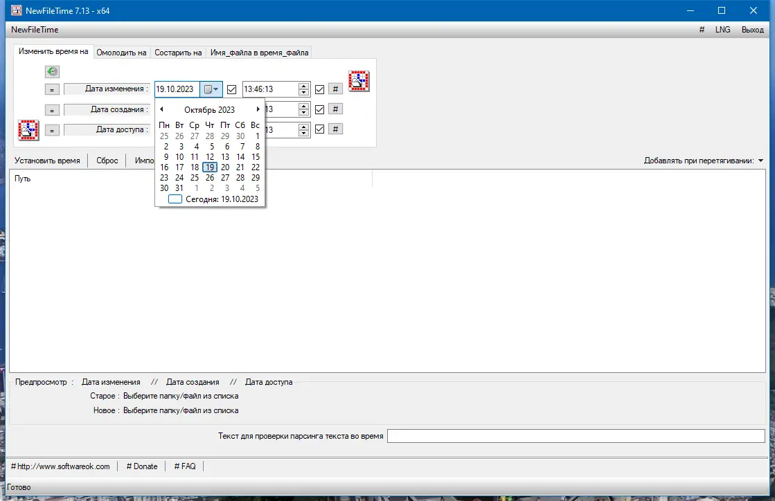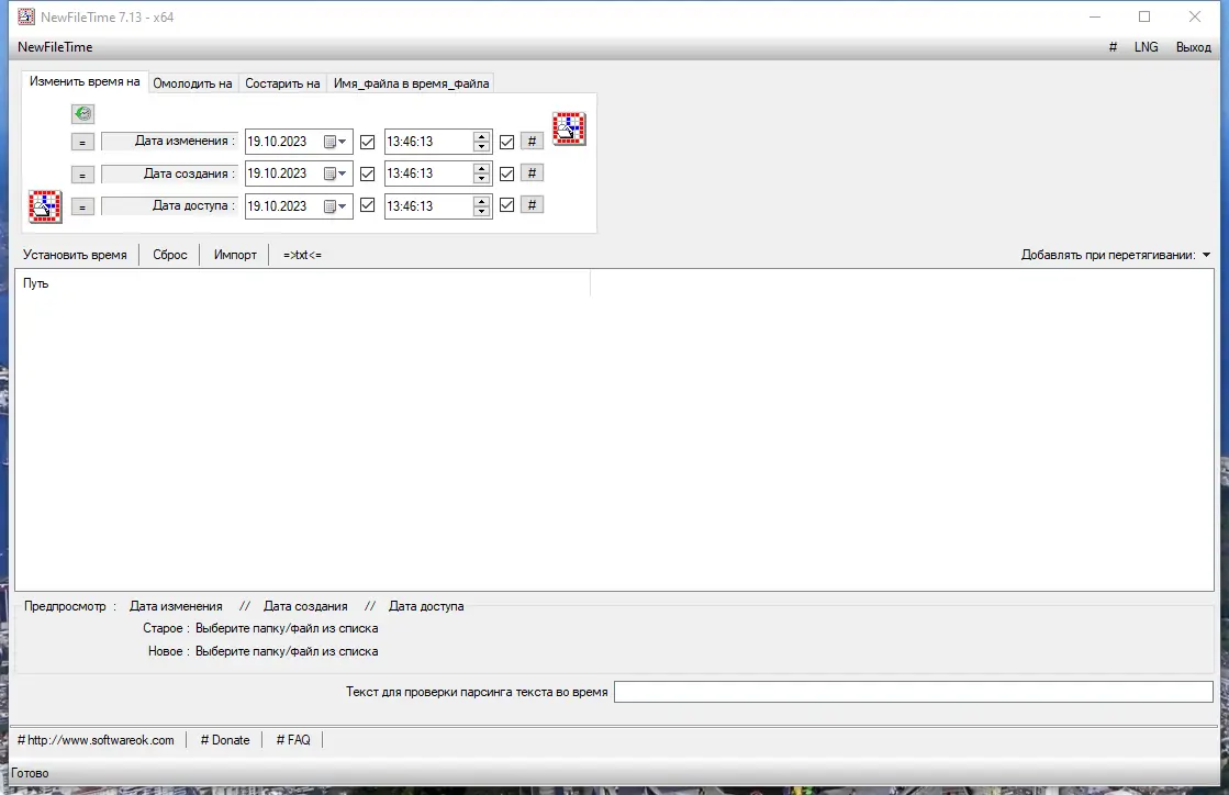 Утилита NewFileTime представляет собой компактное приложение, разработанное для управления временными атрибутами файлов и папок. Она даёт возможность вручную задавать дату создания, редактирования и последнего открытия файлов, что может быть полезно при работе с архивами, резервными копиями или при восстановлении структуры каталогов. Интерфейс программы минималистичен и интуитивно понятен, не перегружен избыточными настройками, что делает её доступной даже для начинающих пользователей.