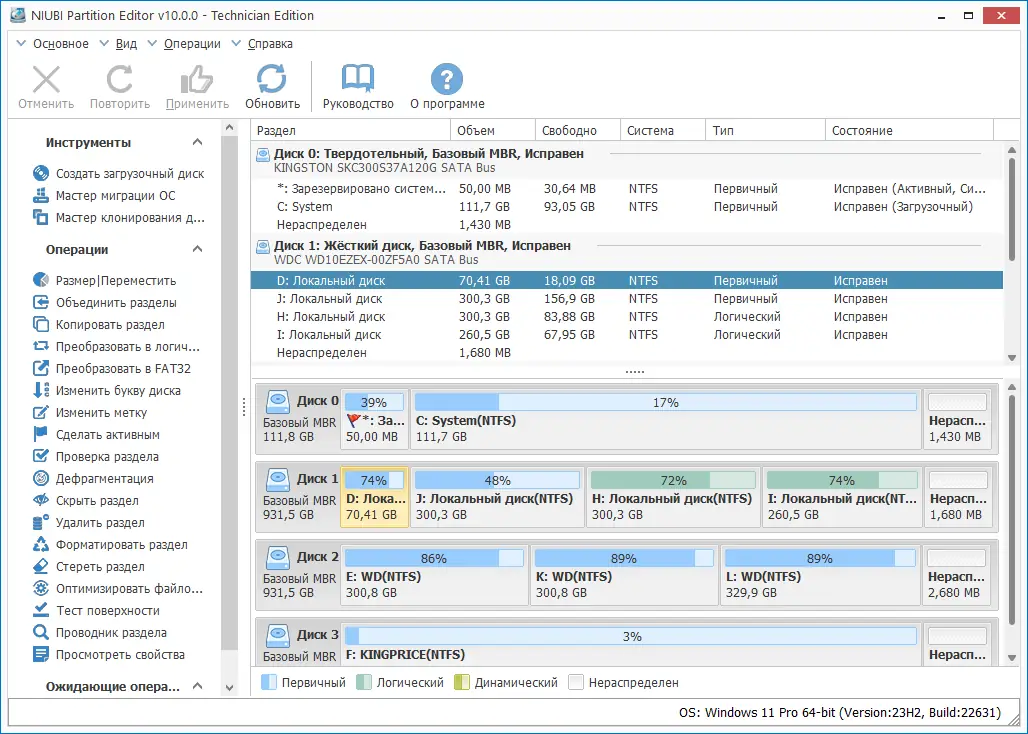 NIUBI Partition Editor — системная утилита, предназначенная для комплексного управления дисками и разделами в операционных системах Windows. Она предоставляет инструменты для создания, удаления, объединения, изменения размеров и конвертации разделов, включая поддержку NTFS, FAT32 и логических дисков. Программа работает с физическими и виртуальными дисками, включая накопители в средах Hyper-V и VMware, а также аппаратные RAID-массивы. Благодаря встроенной технологии Roll-Back, любое изменение можно отменить даже при внезапном отключении питания. Уникальный алгоритм перемещения данных обеспечивает высокую скорость выполнения операций, превосходя аналоги вплоть до трёх раз. Это делает её особенно ценной при работе с большими объёмами информации.