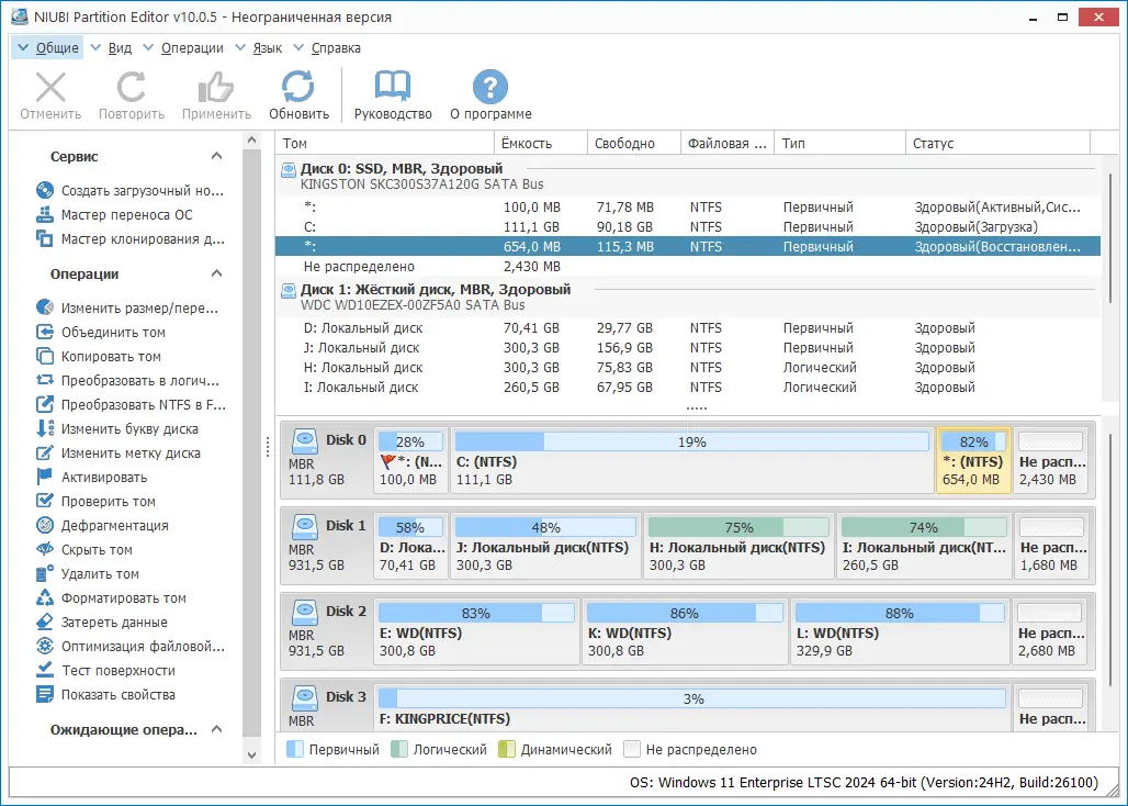 NIUBI Partition Editor разработана для эффективного и безопасного управления дисками в операционных системах Windows. Она позволяет полностью контролировать структуру жёстких дисков, включая создание, удаление, форматирование и изменение параметров разделов. Утилита поддерживает как физические, так и виртуальные диски, включая решения Hyper-V и VMware, а также различные конфигурации RAID-массивов.