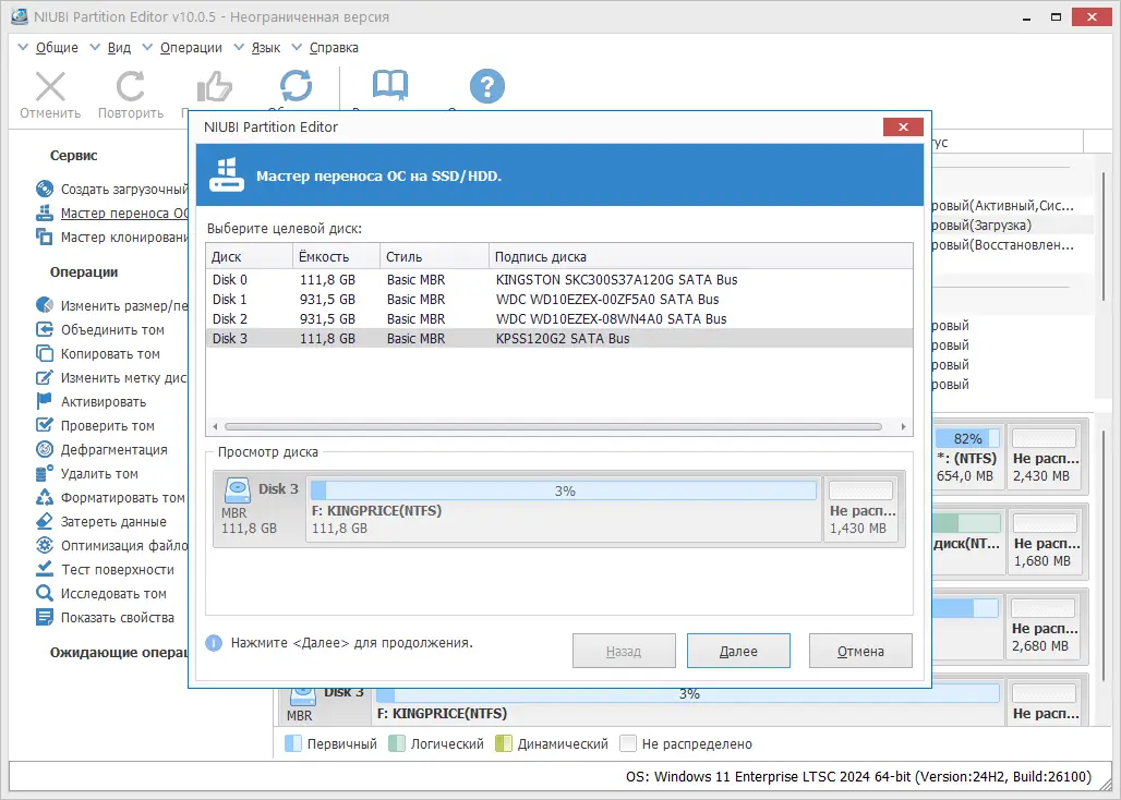 Работа с NIUBI Partition Editor