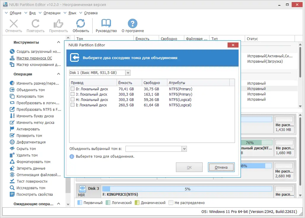 Работа с NIUBI Partition Editor