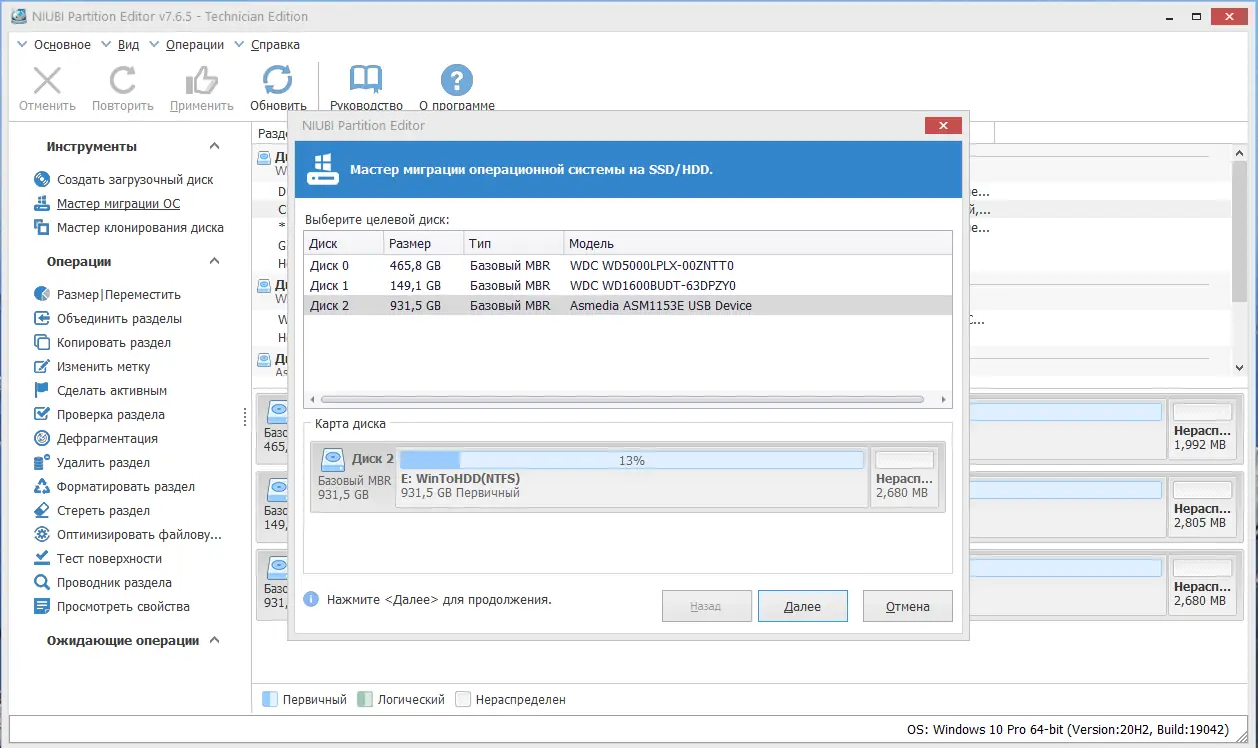 Интерфейс программы интуитивно понятен: все разделы отображаются в виде графической схемы диска, где можно визуально изменять их размеры, перетаскивая границы. Перед выполнением операций формируется очередь задач, которую можно редактировать, отменять или запускать поочерёдно. Это позволяет избежать ошибок и контролировать каждый этап изменения конфигурации диска. Все действия, такие как форматирование, копирование раздела или изменение буквы диска, выполняются в пределах одного окна без необходимости перезагрузки.