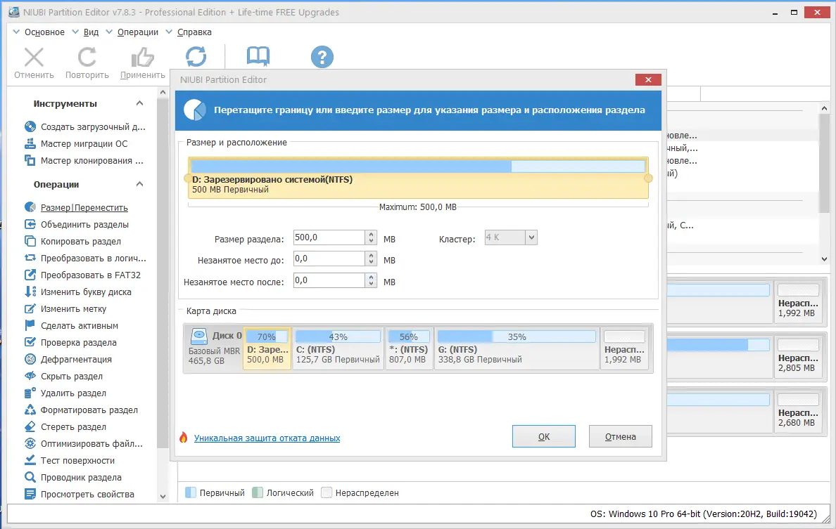 - Автоматическая дефрагментация при изменении размеров или перемещении разделов для повышения производительности.
