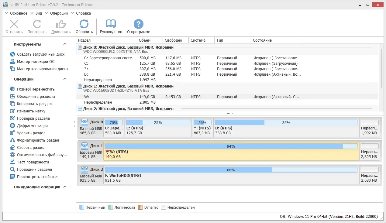 Работа с NIUBI Partition Editor