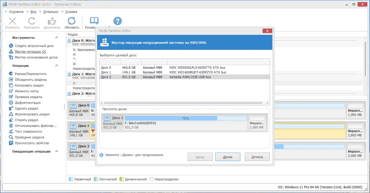 - Поддержка работы с различными типами носителей, включая физические жёсткие диски, внешние накопители, виртуальные машины Hyper-V и VMware.