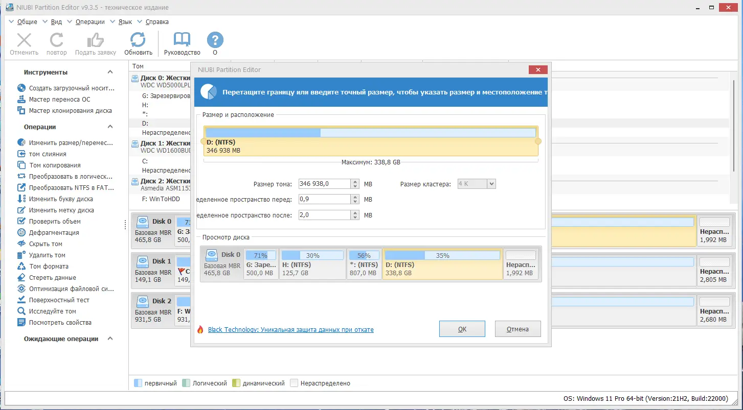 - Автоматическая дефрагментация при изменении размера раздела для повышения производительности системы.