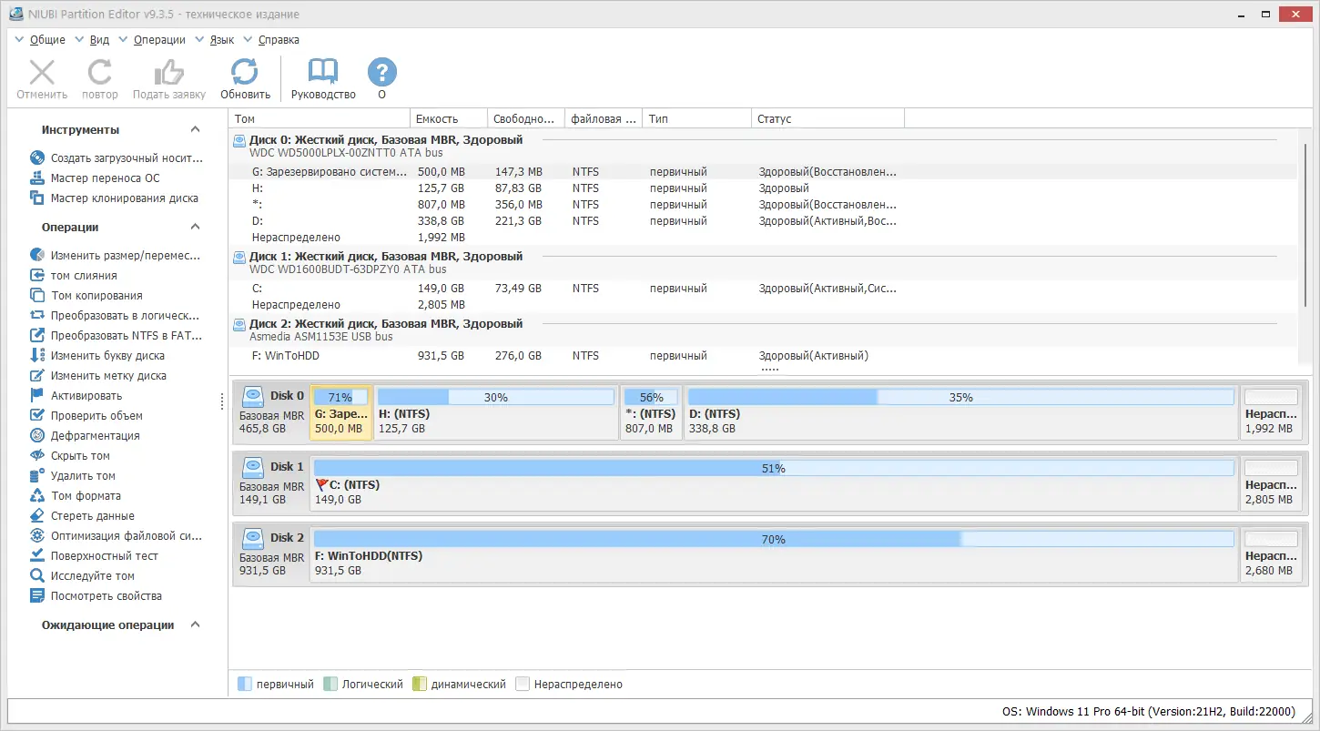 Работа с NIUBI Partition Editor
