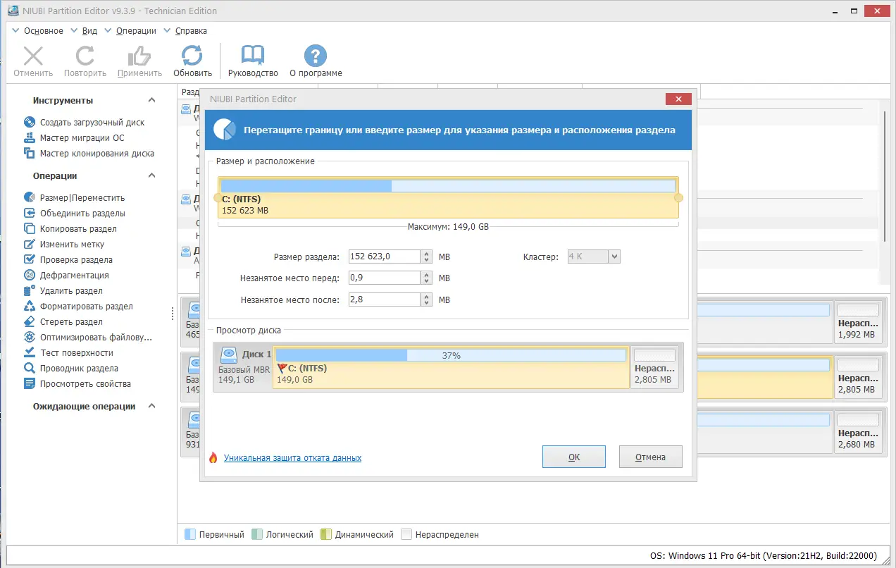 NIUBI Partition Editor выделяется на фоне конкурентов высокой скоростью работы и продуманной системой защиты. Благодаря уникальному алгоритму перемещения файлов, операции выполняются в разы быстрее, а технология Roll-Back минимизирует риски при сбоях. Однако, как и любое ПО, утилита имеет свои ограничения, особенно в бесплатной версии, где отсутствуют некоторые расширенные функции.