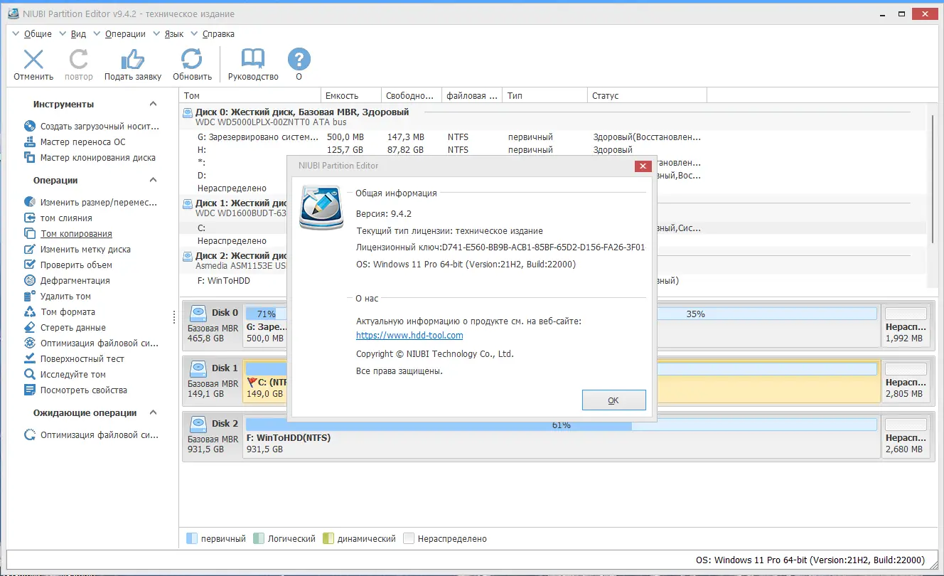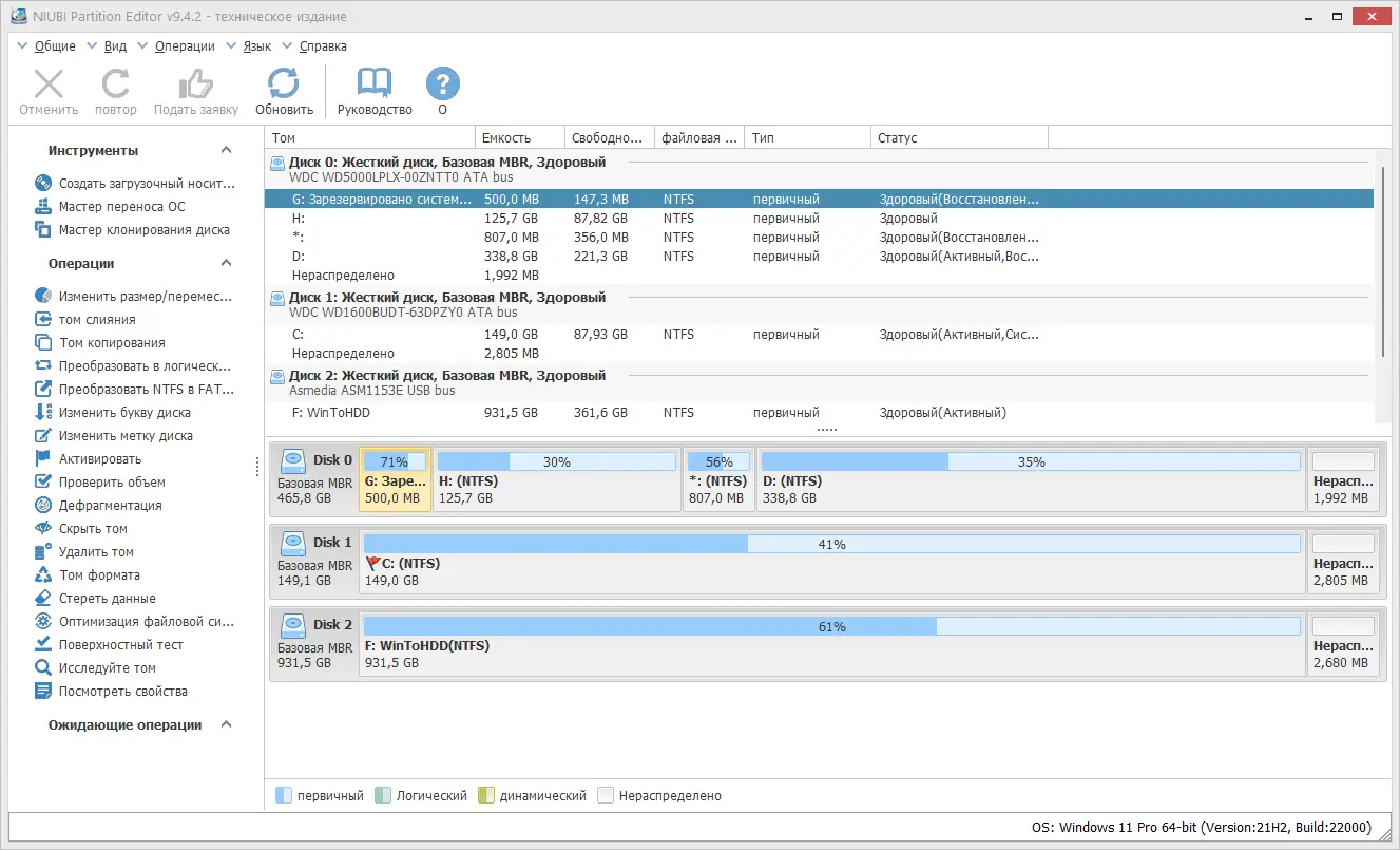 Работа с NIUBI Partition Editor