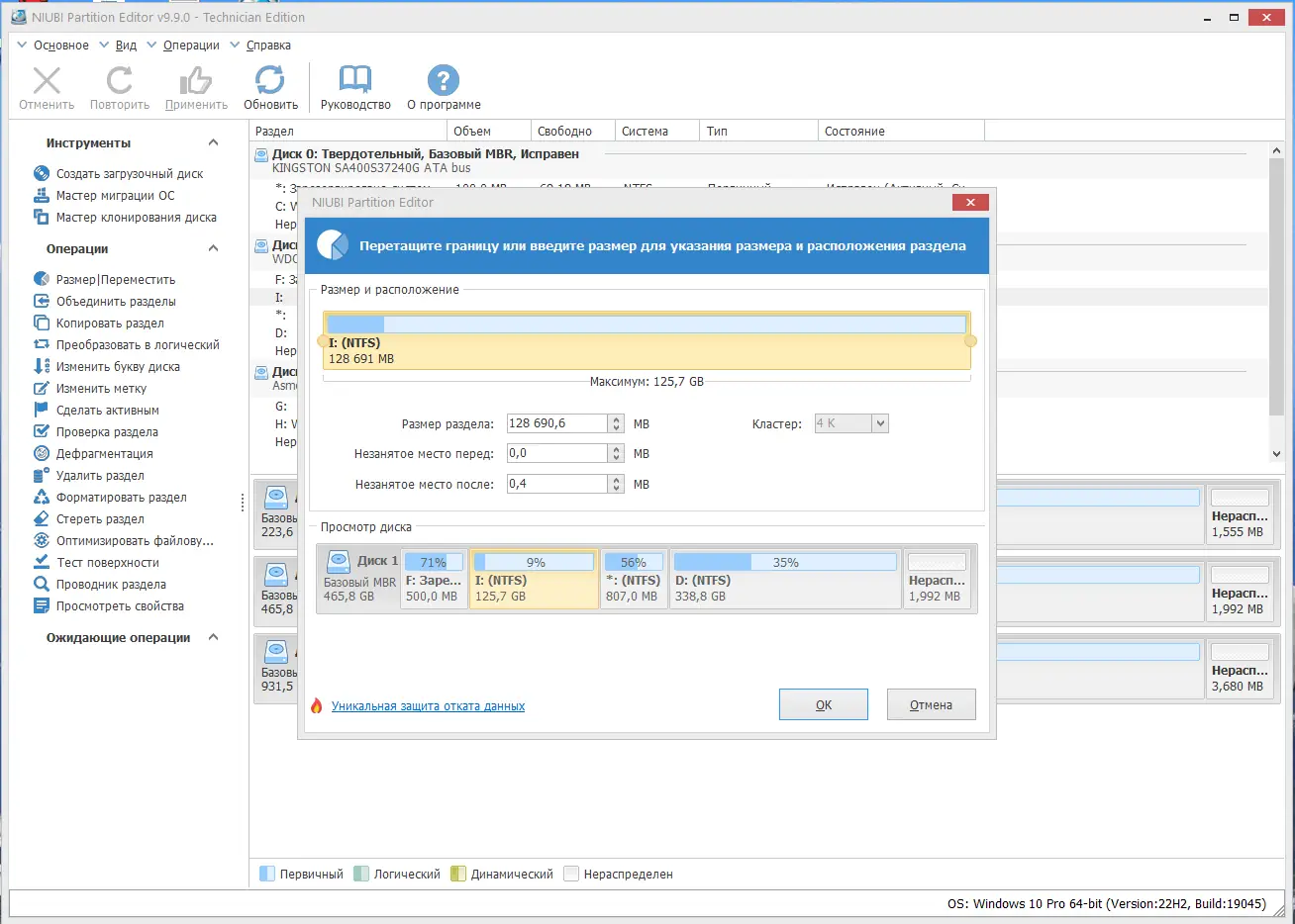 NIUBI Partition Editor — это утилита для управления дисками и разделами, разработанная с акцентом на безопасность, скорость и функциональность. Она предоставляет полный набор инструментов для настройки жёстких дисков, включая создание, удаление, форматирование, клонирование и изменение размеров разделов. Особое внимание уделено защите данных: даже при внезапном отключении питания или сбое системы информация остаётся нетронутой. Программа поддерживает как физические, так и виртуальные диски, включая решения от Hyper-V и VMware. В отличие от аналогов, она предлагает уникальную технологию отката изменений, что значительно снижает риски при выполнении критических операций.