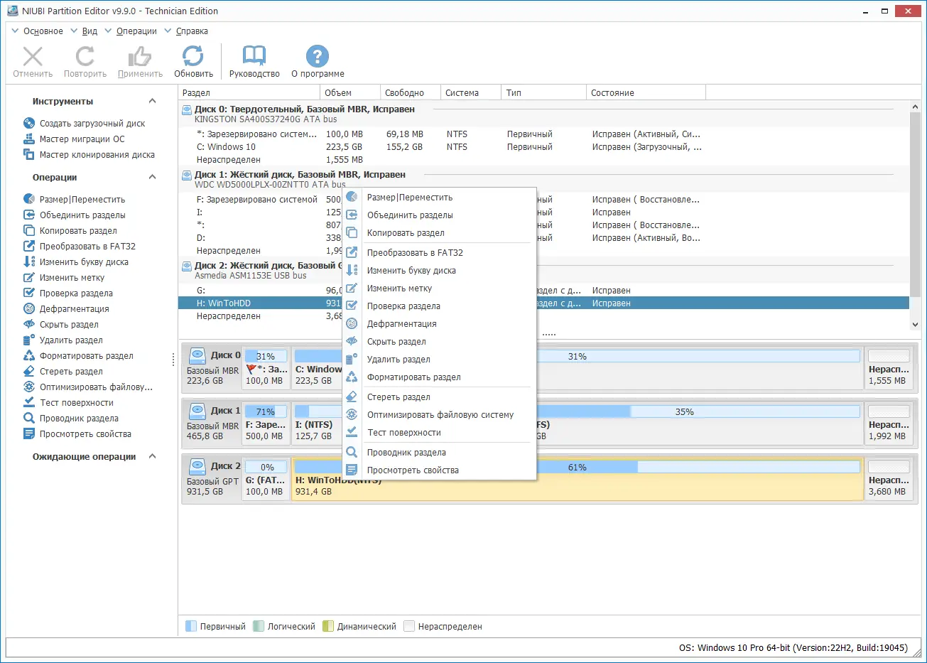 Работа с NIUBI Partition Editor