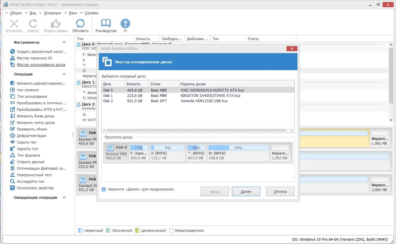 - Расширенные функции, такие как клонирование дисков, доступны только в technician edition.