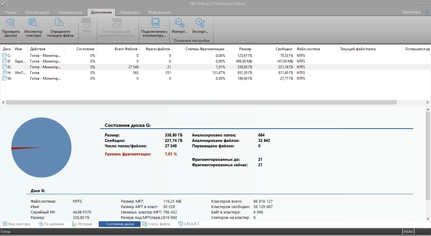 - Автоматический фоновый мониторинг состояния дисков для немедленной оптимизации