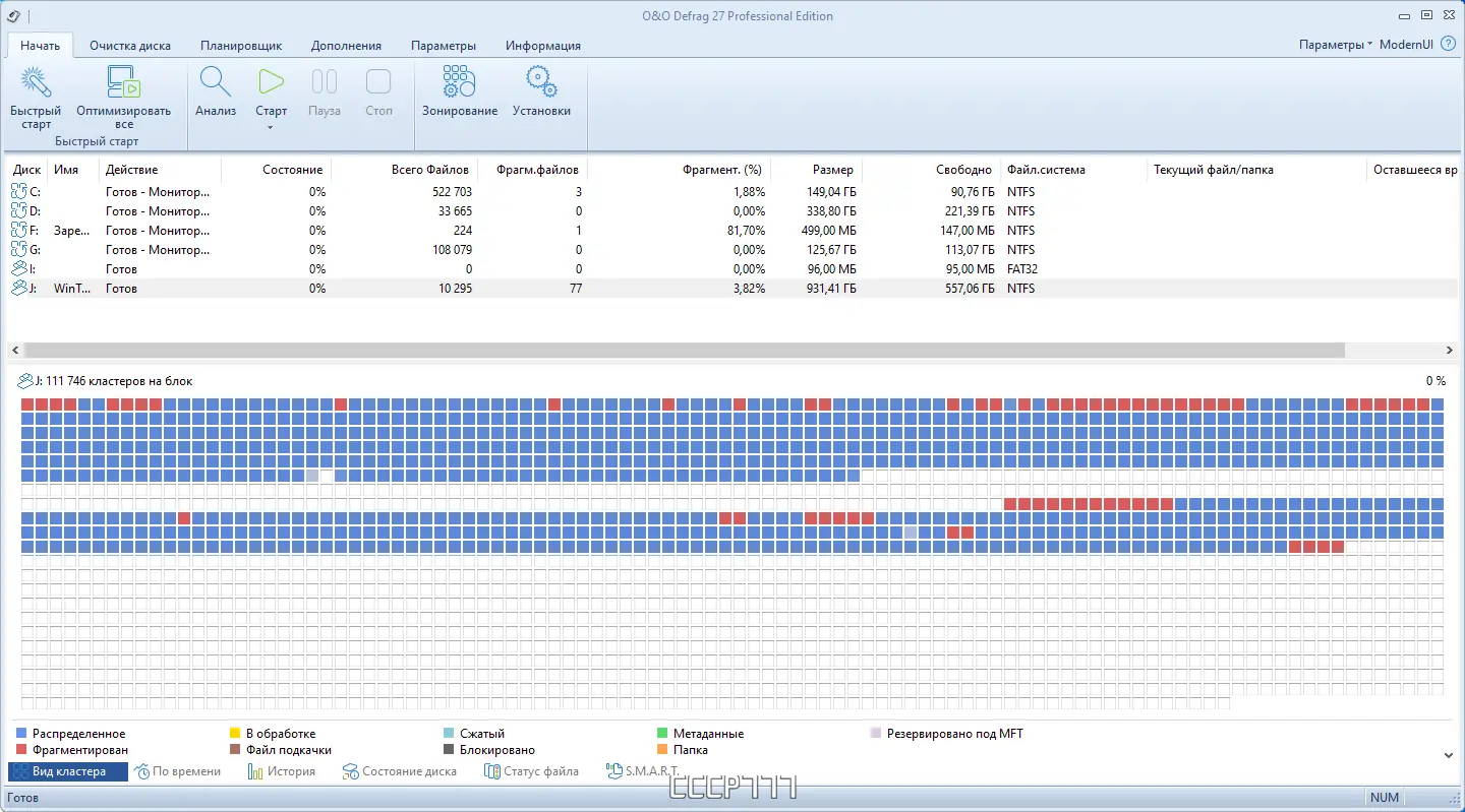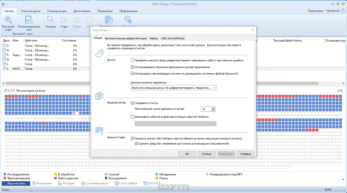 Работа с O&O Defrag