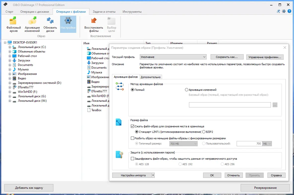 - Программа поддерживает создание образов дисков в фоновом режиме без необходимости перезагрузки или остановки работы системы.