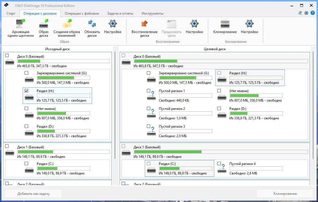 - Резервное копирование осуществляется с возможностью клонирования дисков и создания полных образов системы.