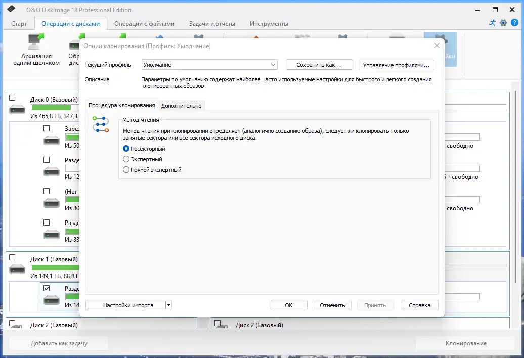 - Позволяет создавать образы дисков и системных разделов с возможностью последующего клонирования