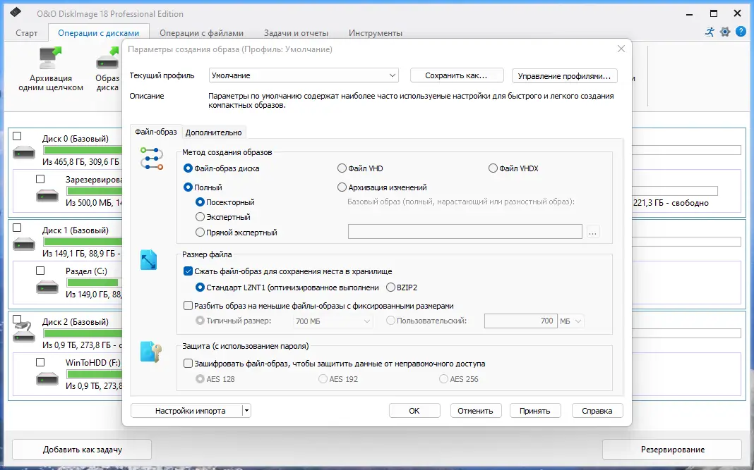 - Поддерживает прямое создание образов в форматах VHD и VHDX для виртуализации