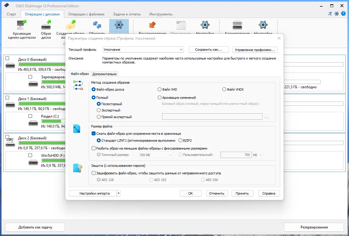 Работа с O&O DiskImage