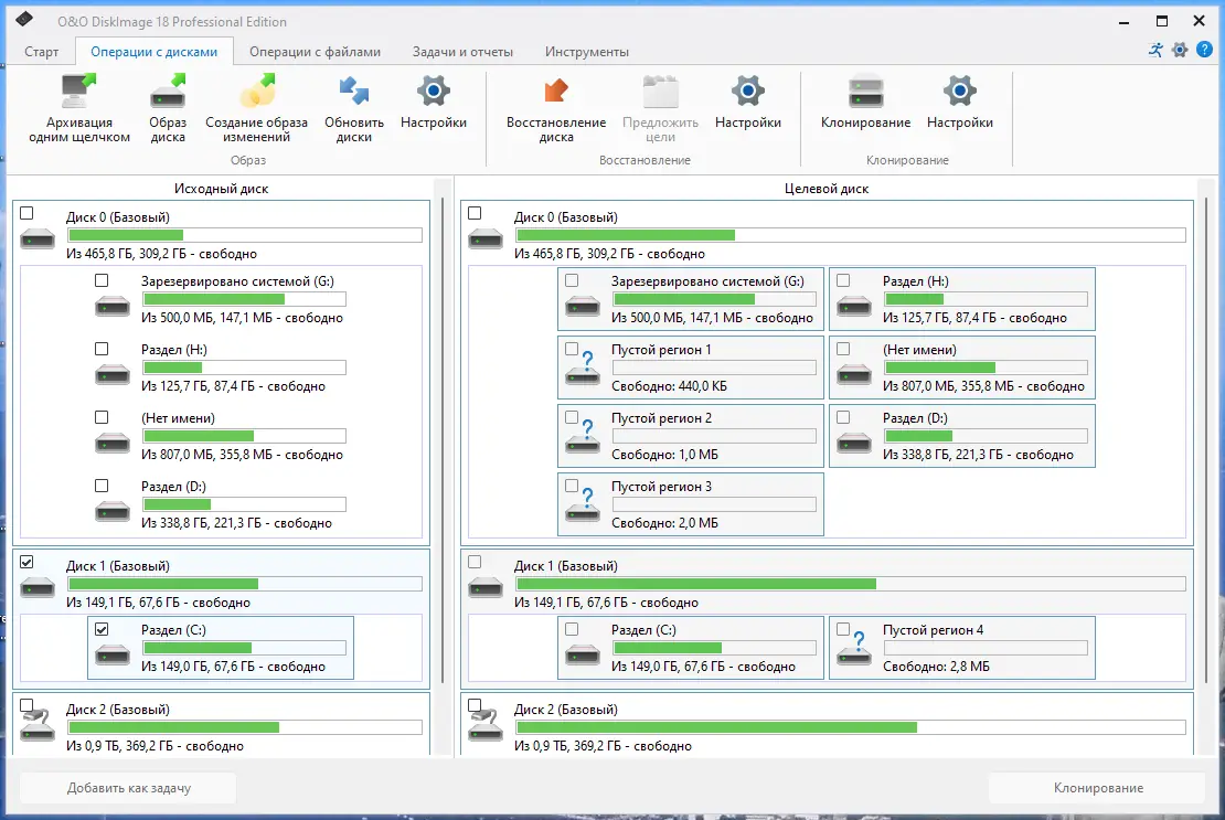 - Возможность клонирования дисков и разделов без потери данных