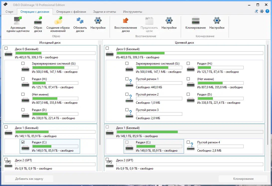 - Поддержка клонирования дисков и создание загрузочных резервных копий