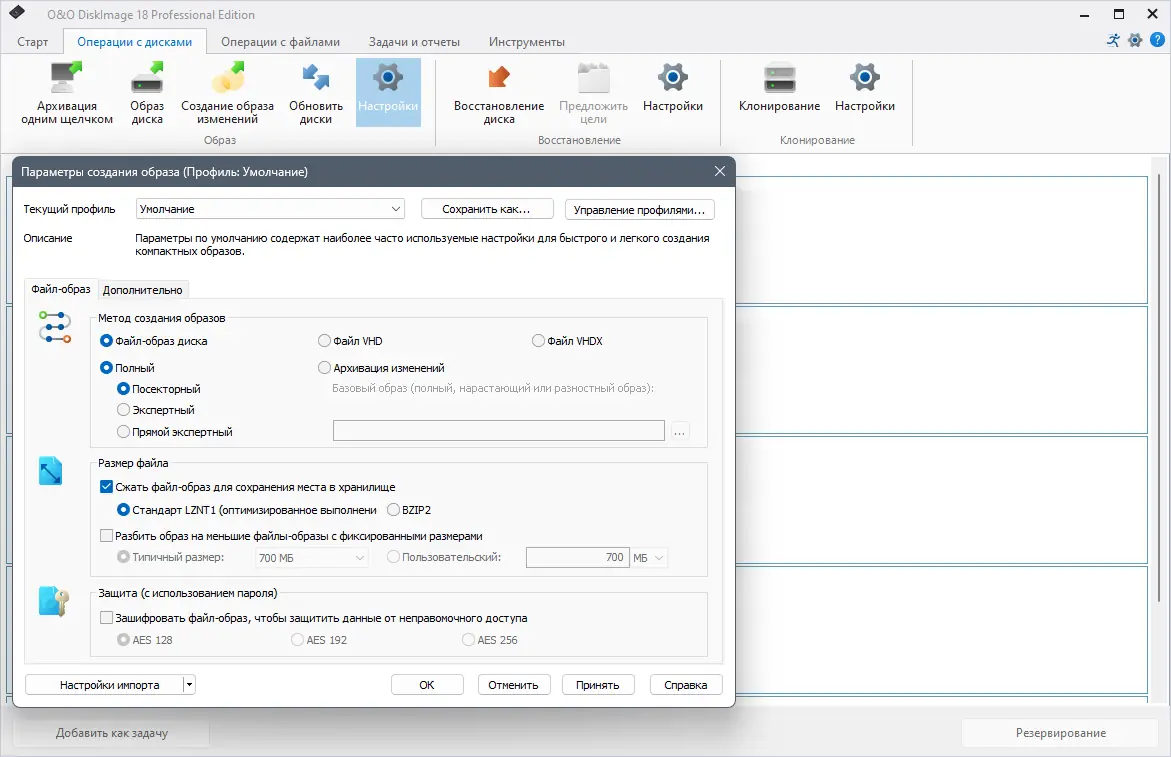 Описание O&O DiskImage
