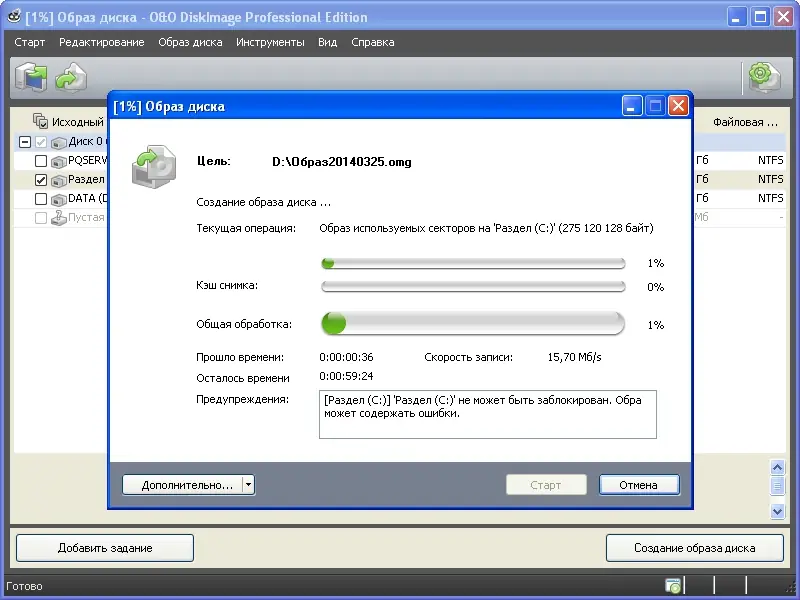 Работа с O&O DiskImage