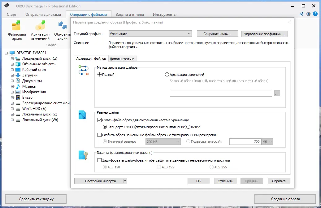 Работа с O&O DiskImage