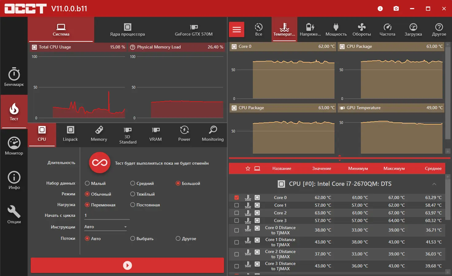 - Проведение стресс-теста центрального процессора с анализом стабильности