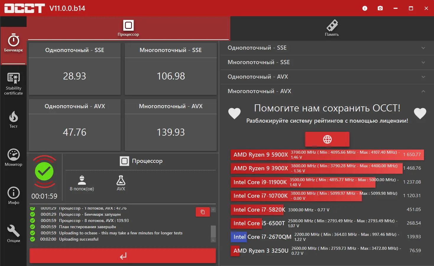 - Проведение стресс-теста центрального процессора и оперативной памяти в парном или раздельном режиме