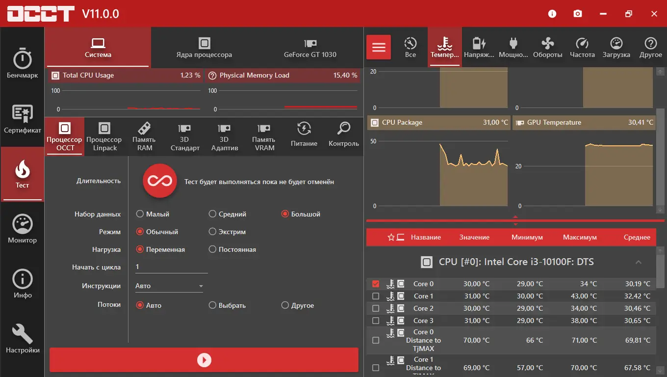 OCCT — это мощная утилита для тестирования стабильности компьютера, позволяющая выявить нестабильную работу процессора, оперативной памяти и видеокарты под высокой нагрузкой. Программа строит наглядные графики производительности и температурных показателей в реальном времени, что делает её незаменимой при разгоне или диагностике систем.