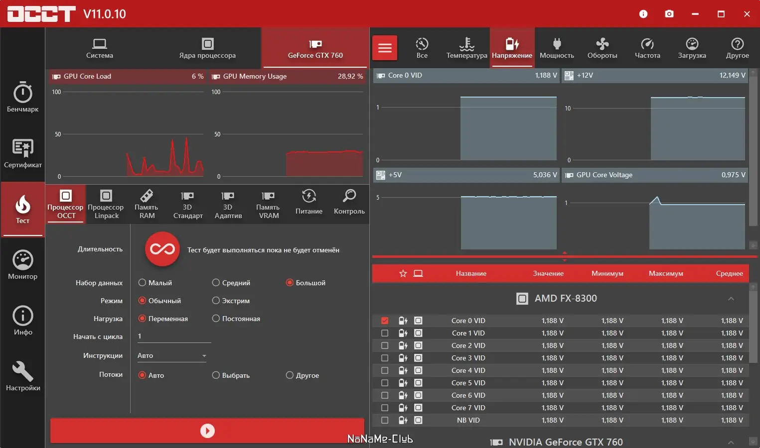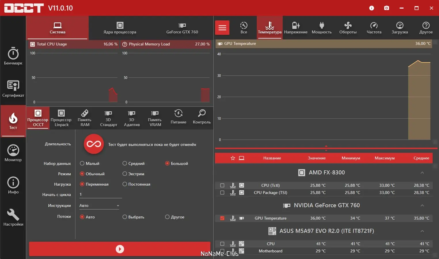 Перед началом теста убедитесь в наличии чистоты в системе охлаждения, так как высокая нагрузка может привести к перегреву.