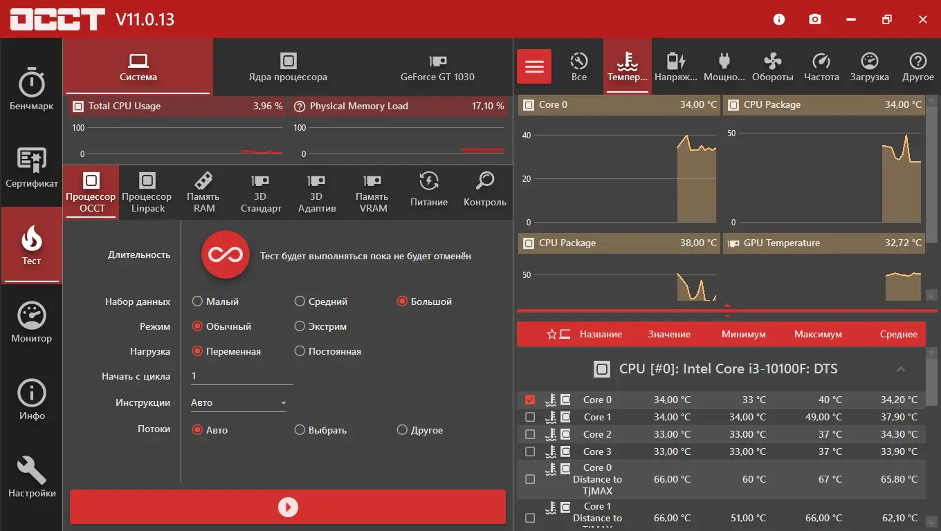 OCCT — это мощная утилита для стресс-тестирования компьютера, позволяющая проверить стабильность работы центрального процессора, оперативной памяти и видеокарты под высокой нагрузкой. Программа отображает результаты в виде наглядных графиков и поддерживает интеграцию с инструментами мониторинга, что делает её незаменимой при разгоне или диагностике системы.