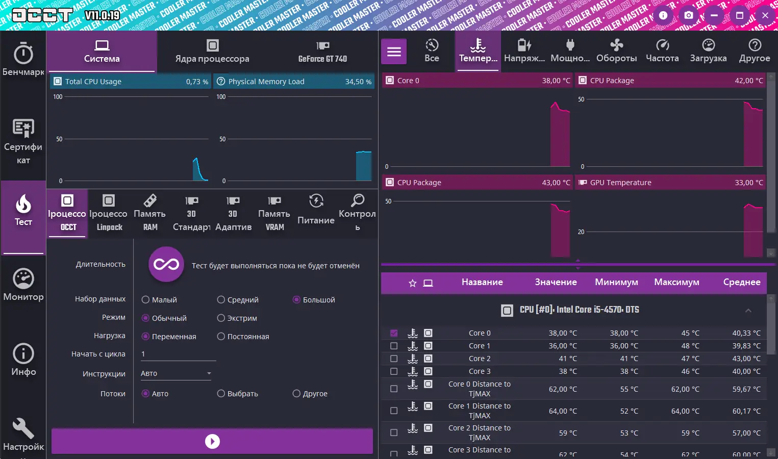 OCCT — это утилита для стресс-тестирования компьютера, позволяющая оценить стабильность работы центрального процессора, оперативной памяти и видеокарты под высокой нагрузкой. Программа отображает результаты в виде наглядных графиков и поддерживает интеграцию с системами мониторинга, такими как SpeedFan и AIDA64. Тест помогает выявить перегрев, ошибки в работе компонентов и нестабильность системы после разгона.