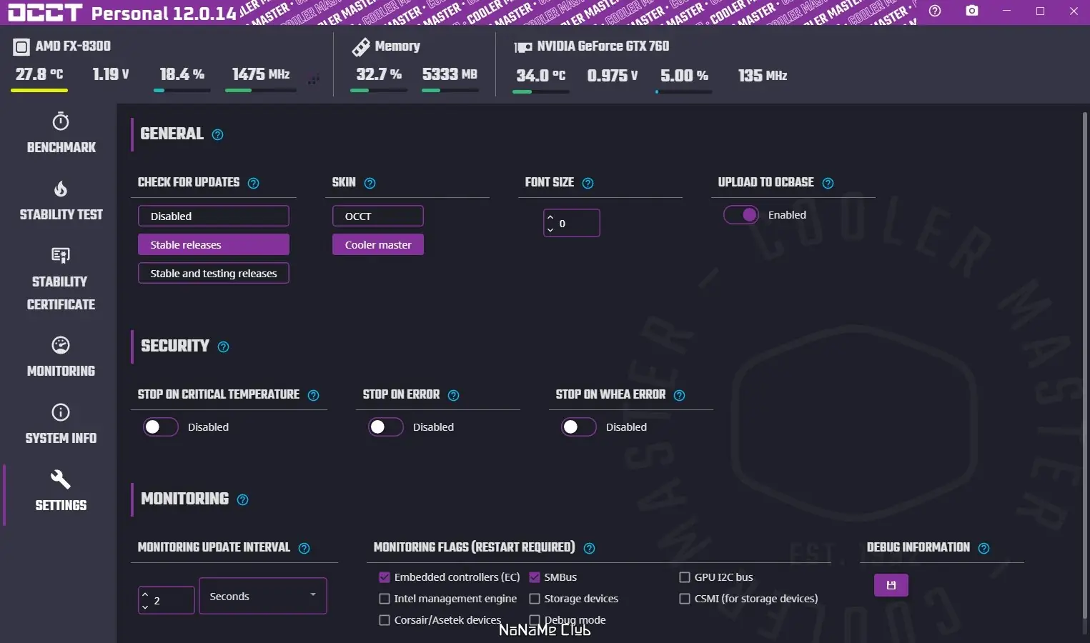 - Два варианта тем оформления — стандартная и от CoolerMaster