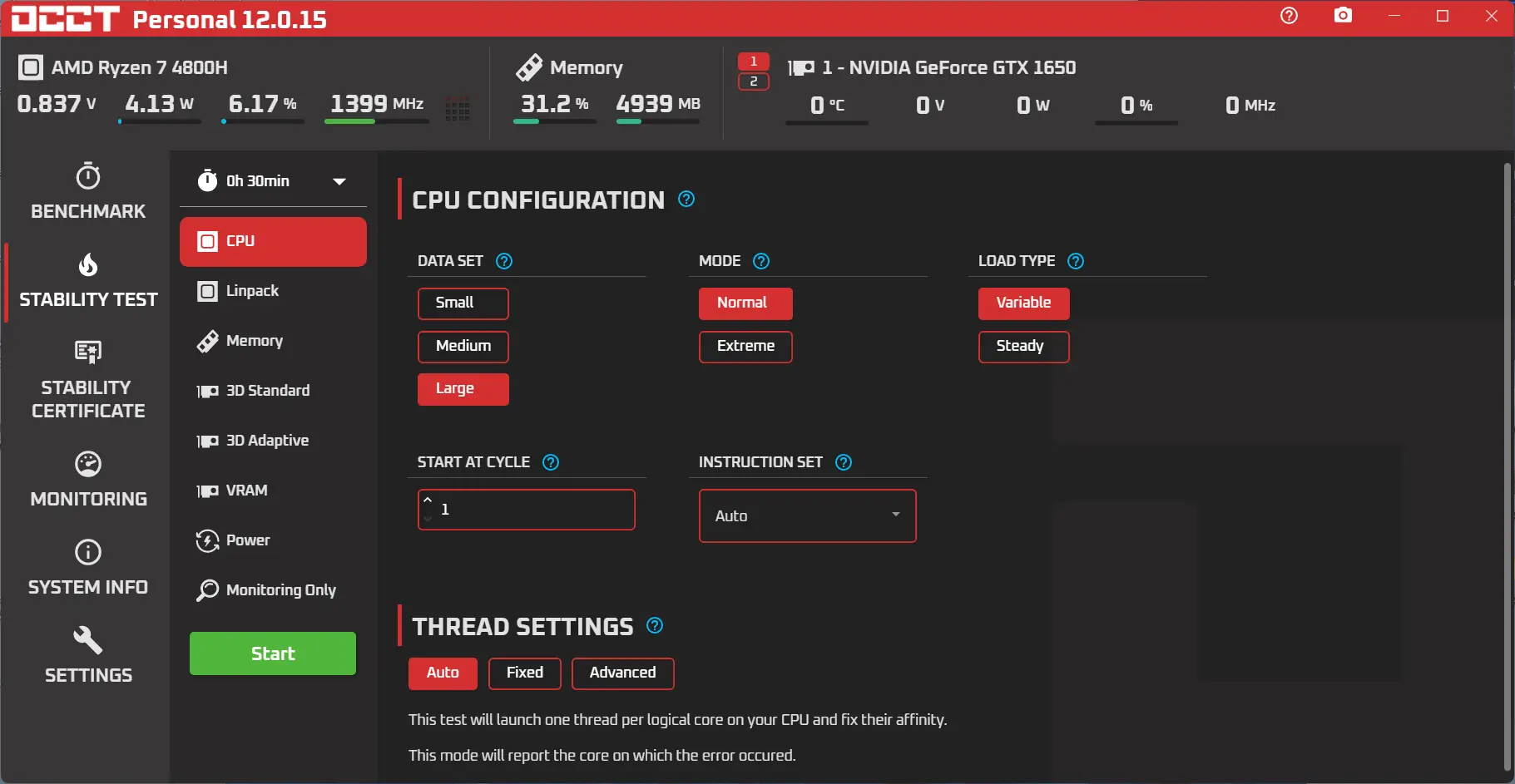 OCCT — это специализированный инструмент, предназначенный для проверки стабильности работы ключевых компонентов компьютера под высокой нагрузкой. Утилита позволяет проводить синтетические тесты, имитируя экстремальные условия эксплуатации, чтобы выявить возможные сбои в работе системы. Особое внимание уделяется центральному процессору и оперативной памяти, которые тестируются как отдельно, так и в парном режиме для оценки взаимодействия.