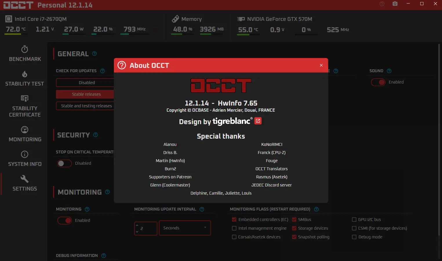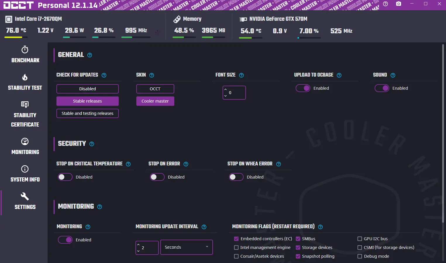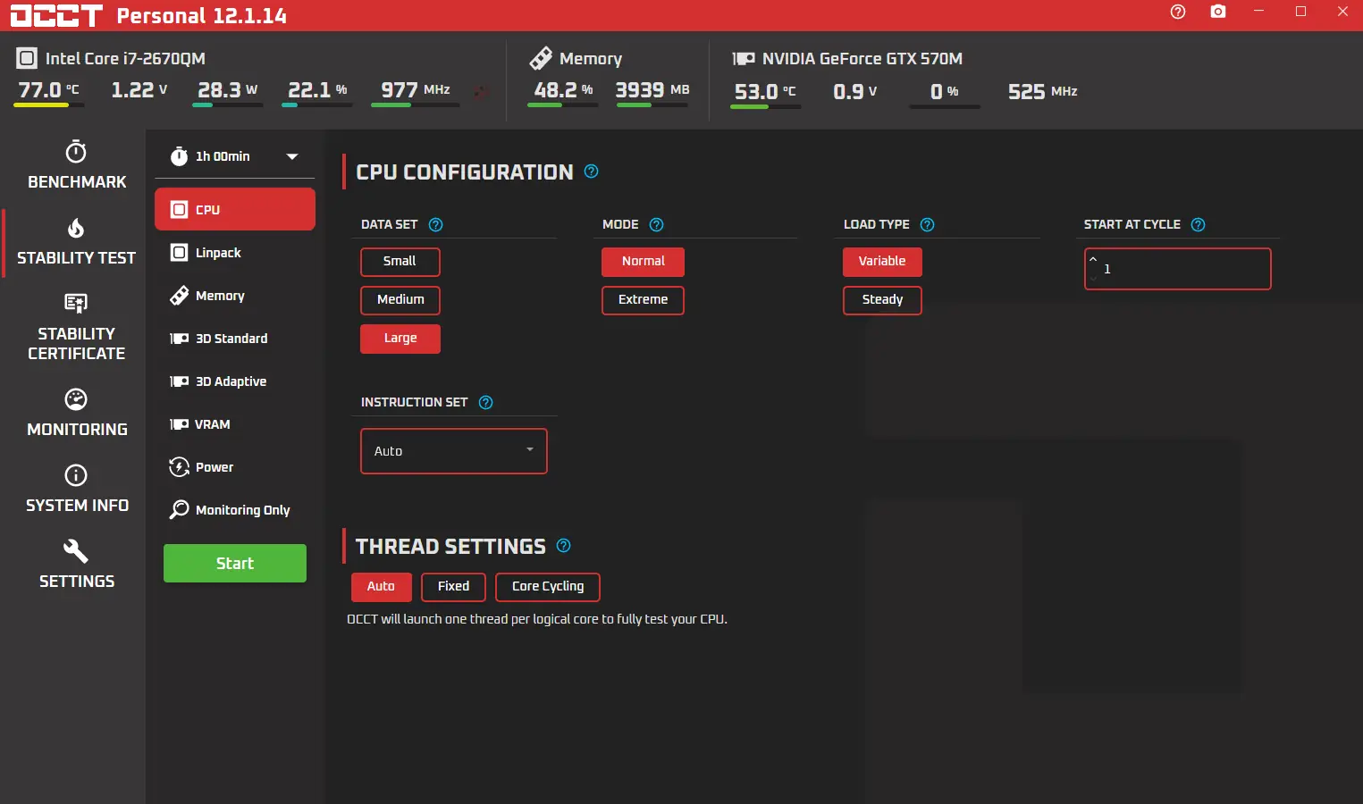 OCCT разработана для проведения синтетических тестов, направленных на выявление нестабильности компонентов компьютера. Утилита позволяет выполнять параллельное тестирование процессора и оперативной памяти, а также отдельные проверки каждого из модулей. Нагрузка имитирует реальные сценарии использования, что делает результаты максимально приближенными к повседневной эксплуатации системы.