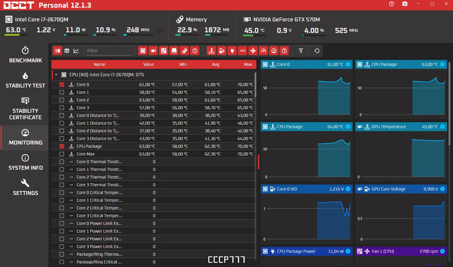 OCCT — утилита для тестирования стабильности компьютерной системы под высокой нагрузкой. Программа проводит стресс-тесты процессора, оперативной памяти и видеокарты, отслеживая температуру, напряжение и производительность компонентов. Результаты отображаются в виде графиков, что позволяет точно оценить состояние системы.